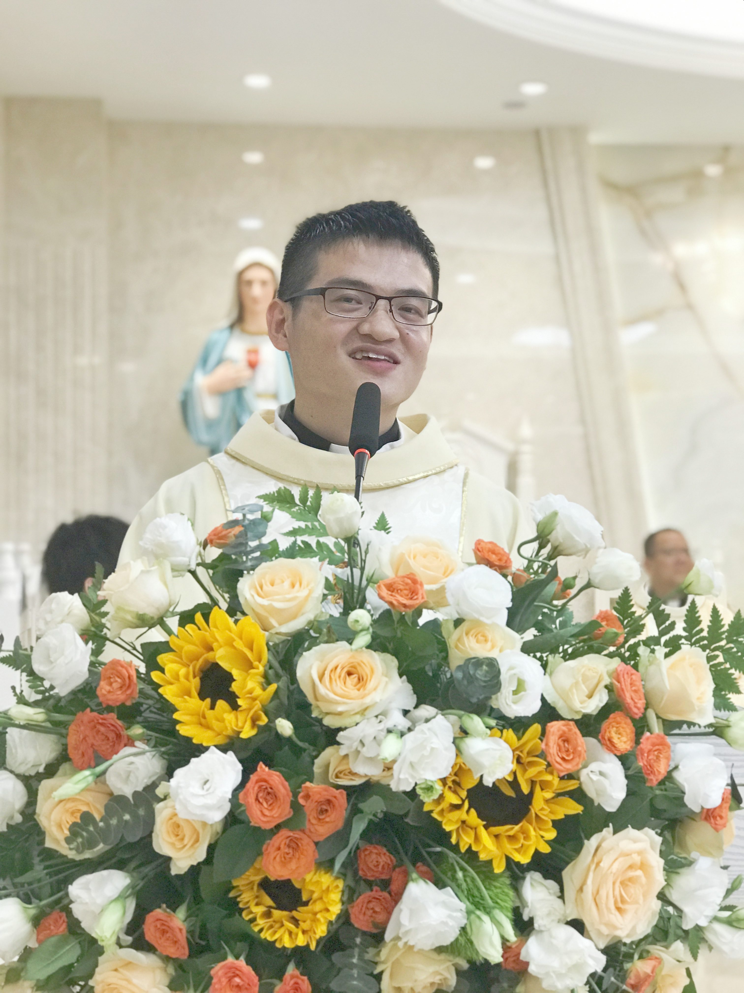 首祭弥撒有本堂田神父和来自河北修院的5位神父共祭,11位修士以及刘燕乐神父的27位亲朋好友与柯桥教友共300多人参礼,感谢天主的恩宠与召叫,让我们相聚在一起见证又一位新神父的诞生。