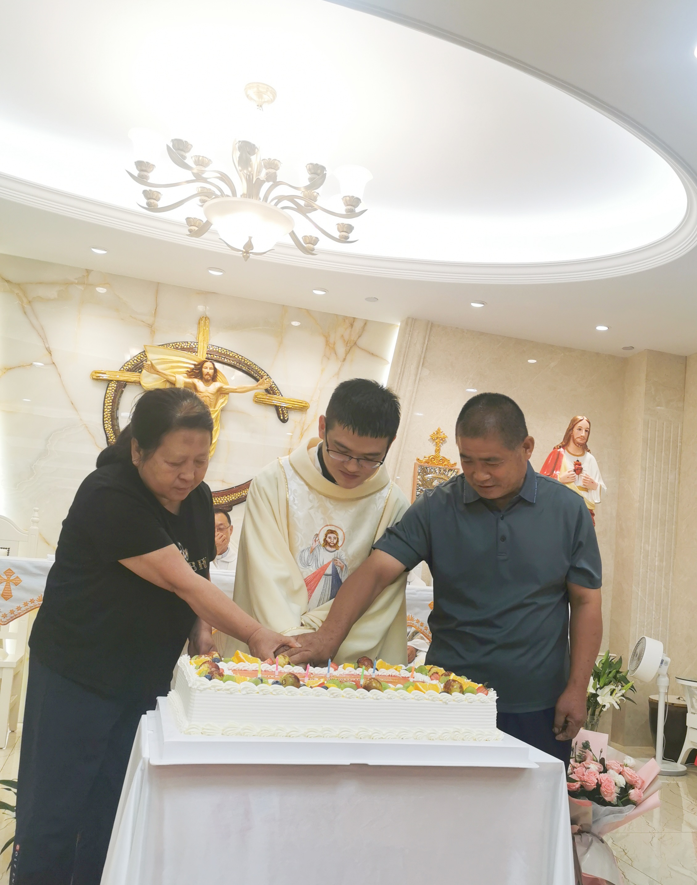 弥撒结束后堂管组为新铎和其父母准备了蛋糕和鲜花,感谢父母的慷慨奉献。新神父响应圣召为德兰之家的天使们(未来的神父修女们)准备了礼品,鼓励我们都要成为耶稣最知心的朋友。
