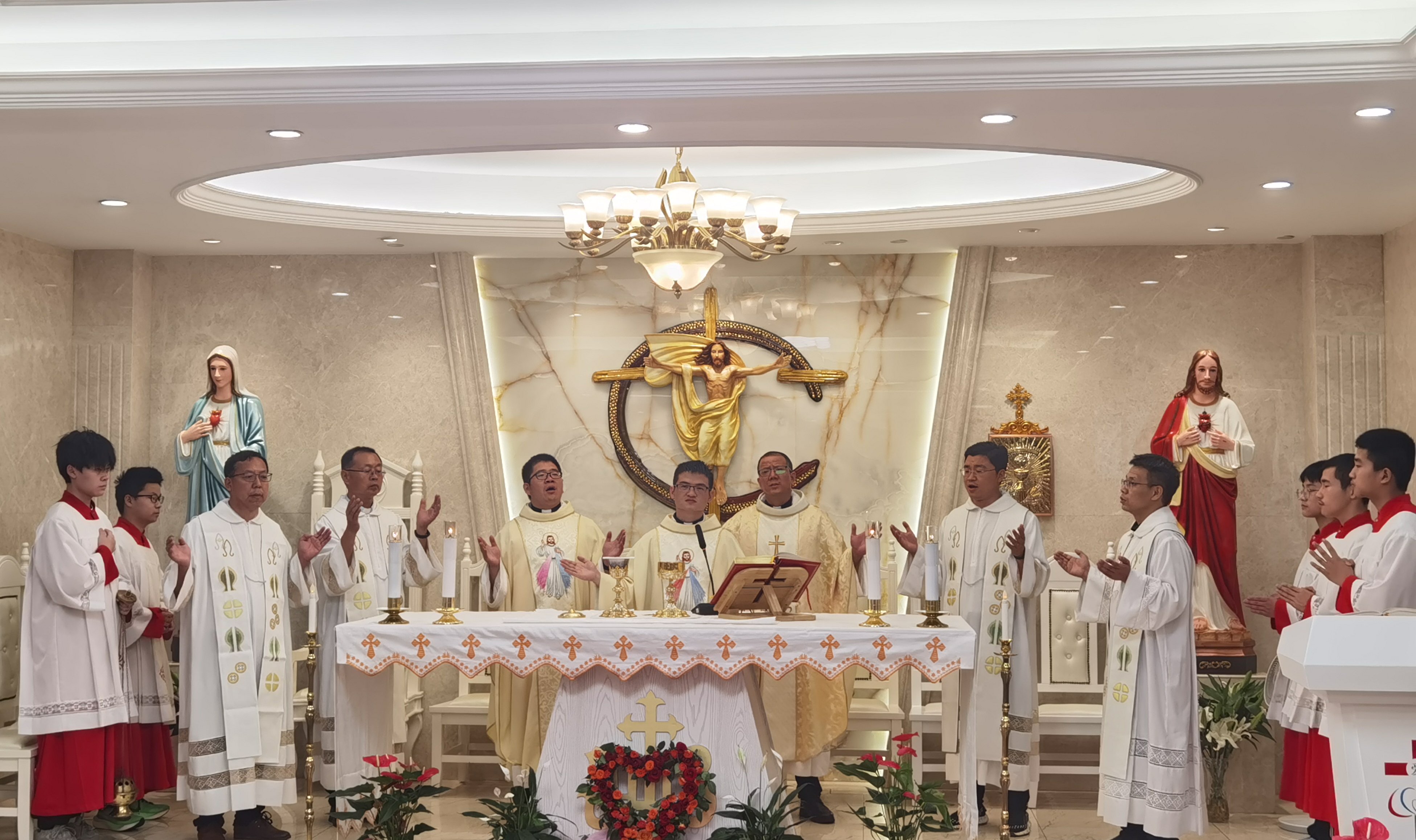 感谢天主!在本堂田神父和堂管组的统筹下为新神父及其家人准备了晚宴,几位神父和修士高歌一曲献唱了他们的班歌,此刻,天主的爱就在聆听当中,让我们一同转向基督的目光,唯有这目光能使万物更新。唯有接受上主的注视,我们才能像圣母玛利亚一样,以天主的目光看待现况,作祂的见证人,唯有天主的目光能改变我们并教导我们如何去注视。