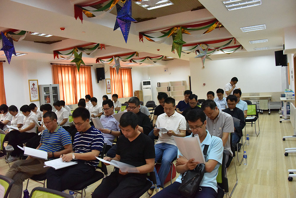 会前祈祷后,全体与会理事向敬爱的胡贤德主教默哀追悼。
