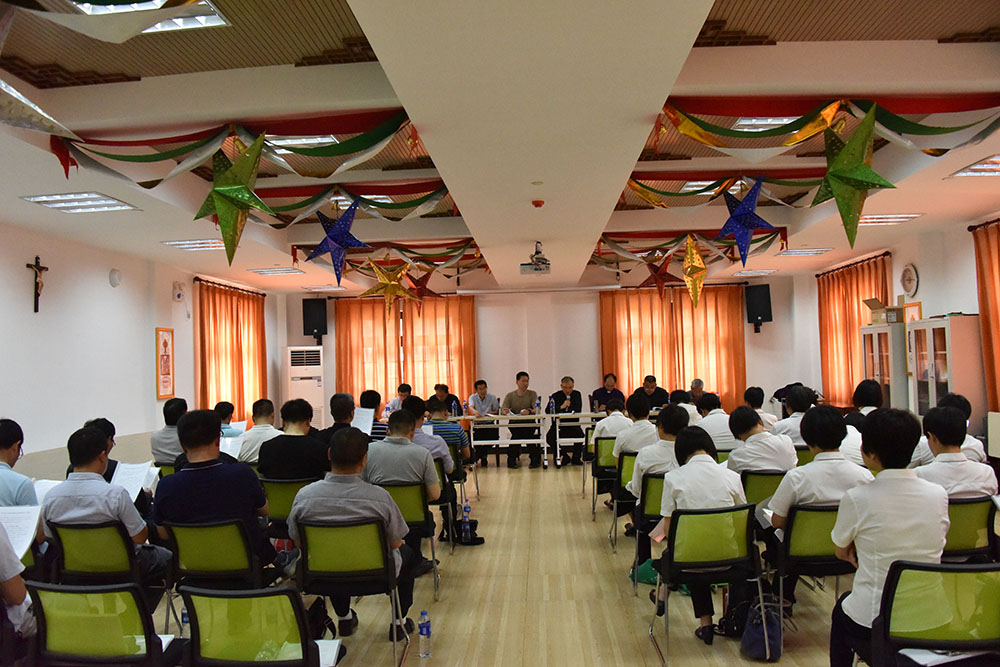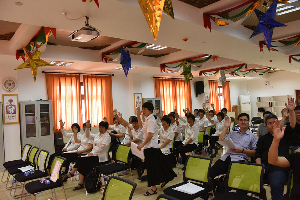 浙江省天主教宁波教区全体理事会议于2018年5月18日上午在宁波江北天主堂主教府召开。应出席会议的理事56人,因事因病请假6人,实到50人,符合章程所规定的人数,可以召开会议。宁波市民宗局有关领导应邀出席了本次会议。