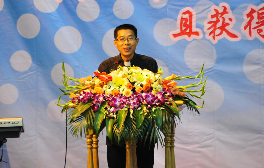 第三届宣讲班校长王江飞神父讲话。他首先引用圣咏上大家耳熟能详的一句话:这是上主所安排的一天,我们应当欢欣鼓舞!然后向大家介绍了这届宣讲班的侍奉团队,并与大家见面,他们分别是:王江飞神父、王安神父、高薇德修女、李浩波、余建根、黄芩、张娓娜、郏丽莎修女。