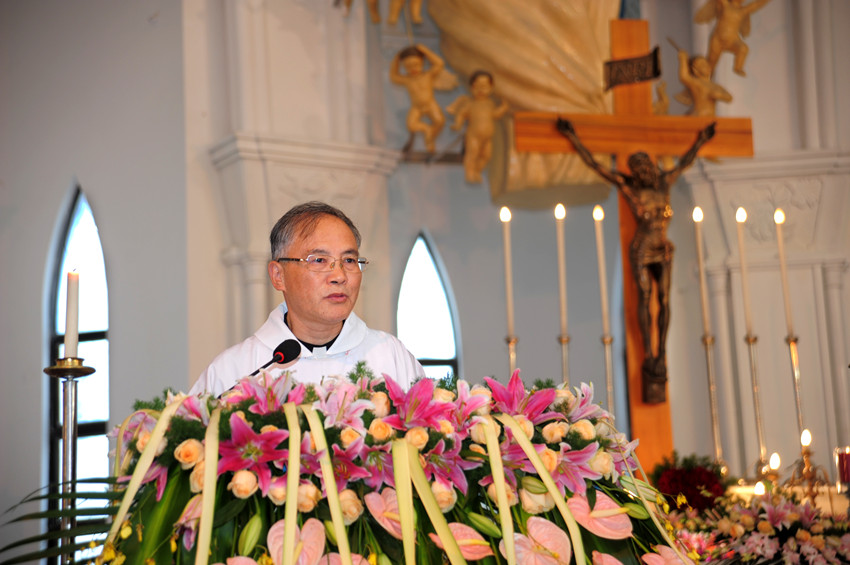 婚姻是天主所祝福,主耶稣所亲定的圣事,使男女双方彼此相爱,互托终身,生育子女,传生人类。美满的婚姻需要天主的祝福和夫妇的共同努力。今天,这对天主所爱、所结合的小夫妻,藉着婚姻圣事,一定会得到天主的助佑,终身受益。同时,从今天开始,你们要遵守所发的婚姻誓盟,共同营造一个温馨、友爱的家庭。