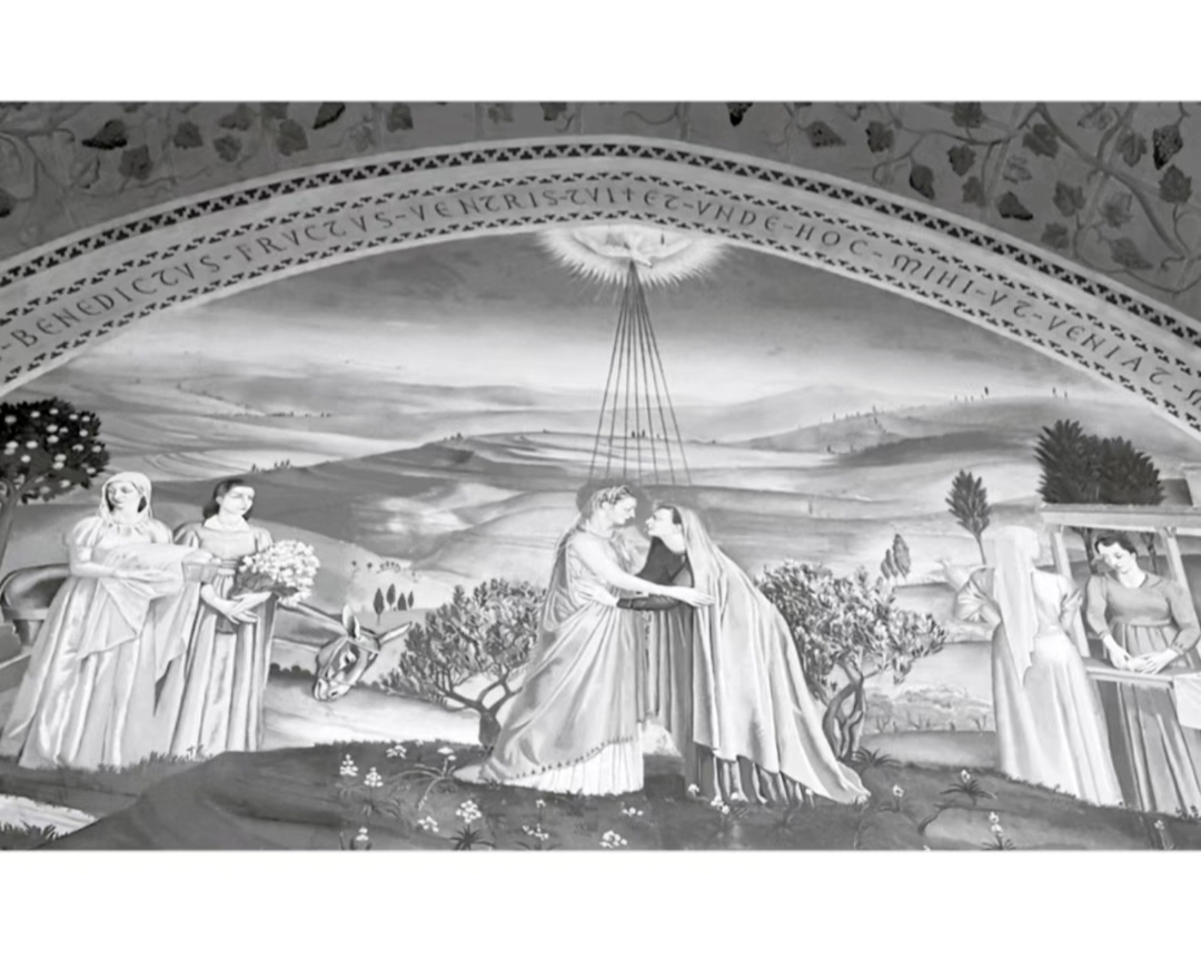 玛利亚就在那几日起身,急速往山区去,到了犹大的一座城。她进了匝加利亚的家,就给依撒伯尔请安。依撒伯尔一听到玛利亚请安,胎儿就在她的腹中欢跃。依撒伯尔遂充满了圣神,大声呼喊说:“在女人中你是蒙祝福的,你的胎儿也是蒙祝福的。吾主的母亲驾临我这里,这是我哪里得来的呢?看,你请安的声音一入我耳,胎儿就在我腹中欢喜踊跃。那信了由上主传于她的话必要完成的,是有福的。”玛利亚遂说:“我的灵魂颂扬上主,我的心神欢跃于天主,我的救主,因为他垂顾了他婢女的卑微,今后万世万代都要称我有福;因全能者在我身上行了大事,他的名字是圣的,他的仁慈世世代代于无穷世,赐与敬畏他的人。他伸出了手臂施展大能,驱散那些心高气傲的人。他从高座上推下权势者,却举扬了卑微贫困的人。他曾使饥饿者饱飨美物,反使那富有者空手而去。他曾回忆起自己的仁慈,扶助了他的仆人以色列,正如他向我们的祖先所说过的恩许,施恩于亚巴郎和他的子孙,直到永远。”(路1:39-55)